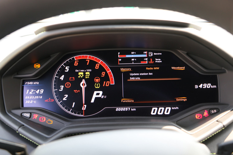 在逐漸熟悉特性後,我們嘗試切換到SPORT(運動)模式並以更激進的風格進行衝刺;理論上在此模式下會允許更多轉向過度的現象才會有電子系統介入加以導正,不過首先我們感受到的是換檔變得更積極,轉速拉昇更快,這些都與LP 610-4得到的經驗相同。此時車輛在加速、煞車和轉彎時,重心轉移的現象更明顯,也就是開始出現轉向過度,而ESC燈號出現的頻率更高,介入時仍允許駕駛持續加速,但車輛會自動導正直到進入受控範圍。