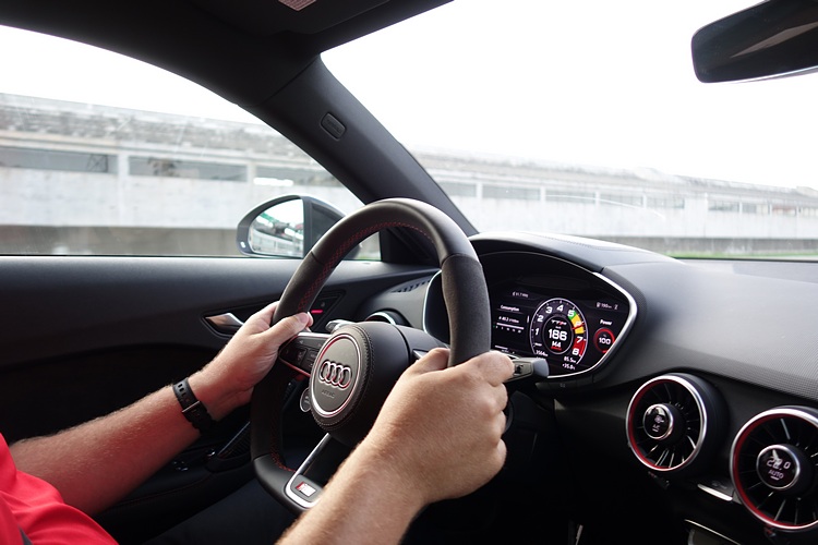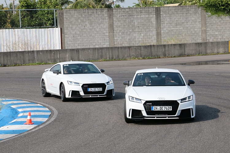 ![]() ▲對於一般人來說,參加Audi極限體驗營也許學不到什麼精妙的技術,不過真正有價值的,應該是可以找到自己和車輛的極限,這無論對於提高日常用車的安全性,或是獲得更高層次的駕駛樂趣,都會很有幫助。依照慣例,在說明安全規則、操駕技巧和駕駛姿勢後,所有人隨即進入車內展開「部份賽道體驗」,在此使用的是TT RS。這款車是我第一次接觸,雖然排氣量只有2.5升,最大馬力400hp和眾多怪獸比起來,連前段班也排不上,但是0-100km/h竟然只要3.7秒!解限速後的極速也有280km/h。 ![]() ▲賽道體驗前先由總教練提示煞車和過彎技巧,路線選擇不是只有外內外那麼簡單,因應不同的車況和彎角,找到最有效率的駕駛風勢,就是精進技術的基本功夫。如同電玩般的操控性下場之後,跟著教練車的路線和煞車點來回奔馳,我們很快就發現TT RS在大鵬灣賽道簡直如入無人之境!最明顯就是高速重煞依然穩定,而且很好預測動態,指向性異常精準且靈活,彎中無論前後輪的循跡性都一直維持得很好,沒有大馬力車常見的推頭或拉扯。出彎後的加速敏銳而有力,渦輪遲滯也不明顯,重點是聲浪真是超級悅耳,每次聽到都快起雞皮疙瘩,總讓人捨不得收油。![]() ▲尚未在台灣上市的TT RS,這次原廠特別從歐洲空運一批來台,讓大家搶先在ADE活動中試駕體驗它的實力。![]() ▲TT RS的數位儀錶具備超轉提醒功能,注意左邊照片在2檔,而右邊照片升上3檔反而超轉,一旦越過6500rpm超轉區界線,背景就會變成紅色。![]() ▲曾經奪下九次利曼耐久賽冠軍的Tom Kristensen出現在Audi極限體驗營,同時也分享他的賽車經驗。![]() ▲繞椎是最簡單有效的操控訓練,也能看出不同車款之間的底盤特性。![]() ▲高速下快速轉動方向盤,車輛依然能夠順利完成閃避,不只加速猛,所需煞停距離也極短,這可不是正常的車能夠辦得到!