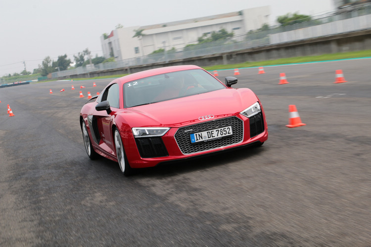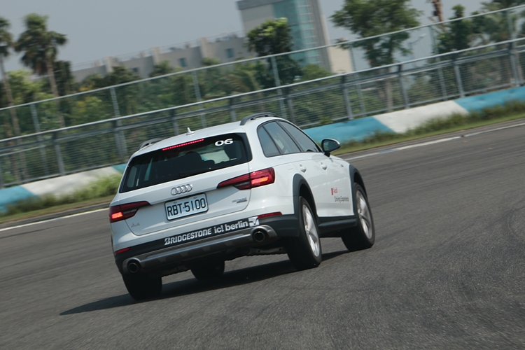 這就是職業和業餘的差距!![]() ▲資深教練向大家展示,中年男子即使小腹發福,也絲毫無損靈活精妙的駕駛技術。我也注意到原廠教練團的駕駛風格彼此差異很大,譬如有位拉力車手出身的資深教練,每當發現我老愛利用大馬力優勢在直路貼近車尾,就會以不帶煞車左右慣性甩尾方式讓他的A4 allroad沿路側滑華麗入彎,後方的我在瞠目結舌的同時,只能眼睜睜看著他跑遠,那種過彎速度根本不可能跟得上。 ![]() ▲由教練駕駛的A4 allroad說穿了就是一輛高底盤旅行車,馬力輸了將近100匹,光靠甩尾過彎卻可以把我們的跑車遠遠拋開。![]() ▲以往被當作賣點的R8 V10 plus,這次反倒成了配角,不過性能表現還是讓人很過癮。