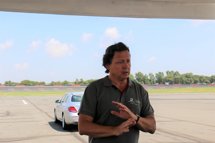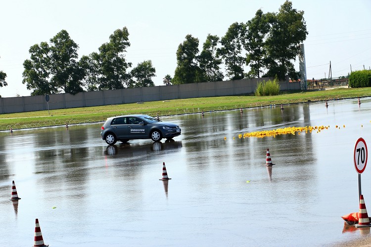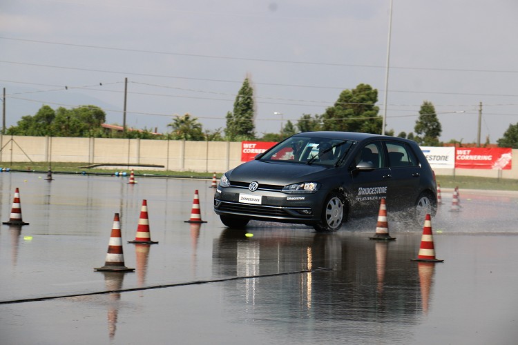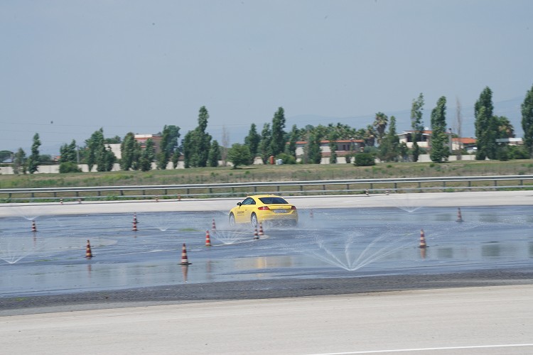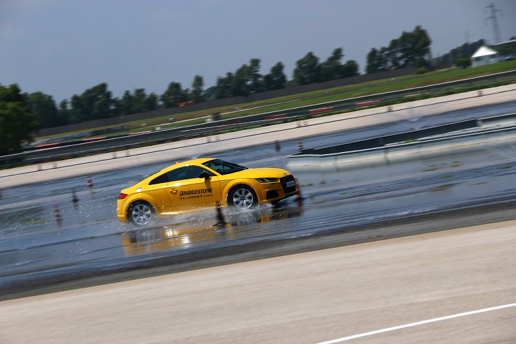 濕地抓地力與制動性體驗著重濕地性能的TURANZA T005有關濕地關卡就有兩項,首先是在積水、潮濕的路面上繞圈圈,看看輪胎能承受多高的速度而不會推頭,使用的車輛為Audi TT-S四輪驅動車款。這關沒有安排對照組,完全憑編輯自身的體感來感受T005對於濕地的承受度。老實說沒有對照組來做評測真的不知道它在濕地表現算是好還是壞,回想過往參加過多數試胎活動中的濕地測試,硬是擠出來與T005比較,覺得它在濕地的可控性很高,轉動方向盤有一點延遲卻還是很好控制,就算速度太快轉向不足出來線性,收點油門就能回到原來路線。 ![]() ▲首先體驗是在積水、潮濕的路面上繞圈圈,看看輪胎能承受多高的速度而不會推頭,使用的車輛為Audi TT-S四輪驅動車款。![]() ▲濕地可控性很高,轉動方向盤有一點延遲卻還是很好控制,就算速度太快轉向不足出來線性,收點油門就能回到原來路線。![]() ▲來到下一關同樣也是濕地,場地布置趨近於一般道路環境,有彎道、有積水、有行人或者腳踏車衝出突發狀況以及緊急煞停。![]() ▲前方那一坨黃色是刻意擺放的黃色小鴨,如果濕地煞車性能不好就會直接壓過去造成傷亡。![]() ▲T005並非是一條標榜性能樂趣的輪胎,但他還是能兼具高速時的穩定性與抓地力。![]() ▲測試全程Stefano Modena先生嘴巴沒有聽過,一派輕鬆又順暢且高速的完成媒體試乘體驗。