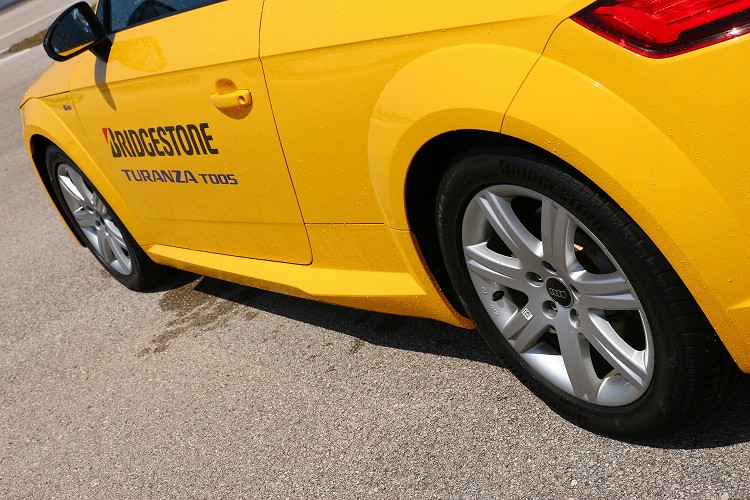 普利司通羅馬測試中心除了測試性能胎POTENZA S007A外,還有一條非常適合台灣氣候使用的TURANZA T005。鎖定車款為頂級旗艦房車所開發,也就是除了M-Power、AMG、RS等車系外的高級房車所使用,不僅能兼顧該有的抓地性能外,雨天濕地的駕控更是它的強項,還保有舒適性以及高壽定等優點。