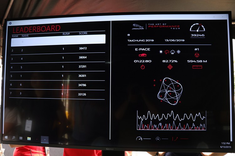 Jaguar英國原廠開發之Smart Cone智慧三角錐挑戰,靈感出自專為頂尖運動員設計的BATAK敏捷度訓練。專屬的電腦系統搭配無線傳輸與GPS衛星定位科技,能隨機運算出百萬種駕馭路徑組合,駕駛者需依照其變幻莫測的燈號指示操控車輛完成挑戰。場地的大小不同擺放錐的數量也會不同,錐與錐間的距離也在原廠規範之中,台中這塊場地不大,場中只擺放了五個通過點。