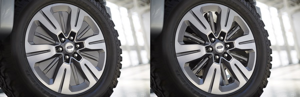 這部概念皮卡另一個值得注意的重點,就是透過多項主動調整式空力機構,來減少空氣阻力。例如主動式水箱罩葉片(Active Grille Shutters)在低速、熱天等需要額外散熱情況下會開啟,在高速公路巡航時則會關閉以降低風阻。同樣地,主動式輪圈葉片(Active Wheel Shutters)、前下導流翼(Drop-Down Front Air Dam)與電動登車踏板(Power Running Boards)等也都會在不同的行駛狀況下開啟/關閉或升降,在不影響車子正常使用與行駛下降低風阻,提升油耗表現。