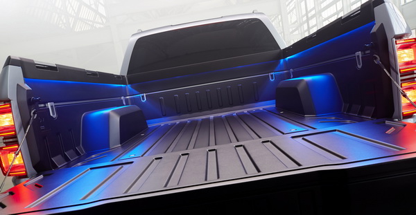 LED照明也廣泛運用這部概念車上,包括頭/尾燈組的全LED燈以及貨斗周圍、後視鏡等處,提供更好的照明效果,也更省電、耐用度更佳,不管是夜間開車時或在車子四周都更為安全。