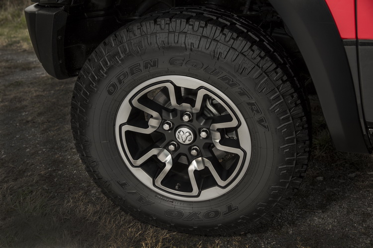 腳上則是以消光黑處理17吋鋁圈則搭配全地形胎。車尾同樣有著大大的黑色「RAM」字樣,兩旁的「Rebel」與「4×4」字樣也彰顯這部全尺碼貨卡的強悍與獨特之處。下方的圓形鍍鉻排氣尾管則採左右單出配置。