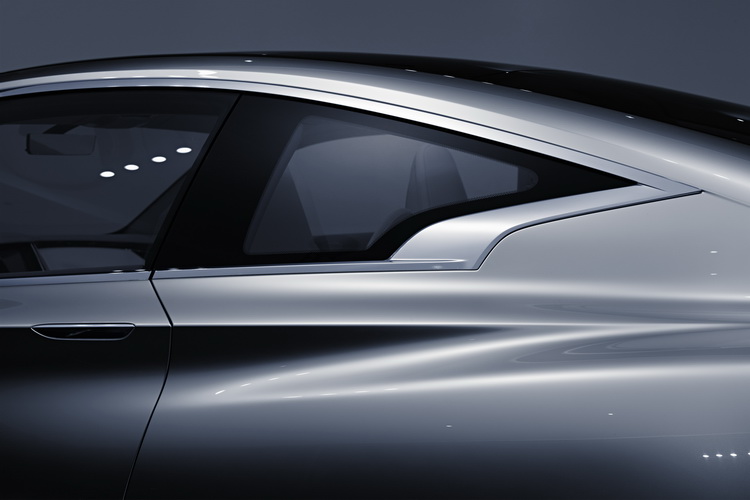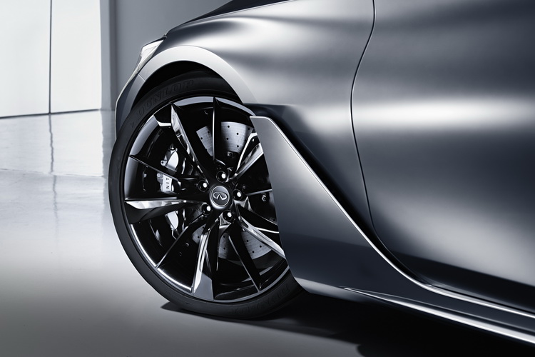 Q60 Concept外觀造型有相當程度受到去年巴黎車展時Q80 Inspiration大型概念車的影響。腳上配備造型靈感來自渦輪葉片的21吋大尺碼鋁圈,前輪拱後方的散熱導流口設計則是取法自Skyline的高性能概念車,也就是INFINITI Q50 Eau Rouge的元素。