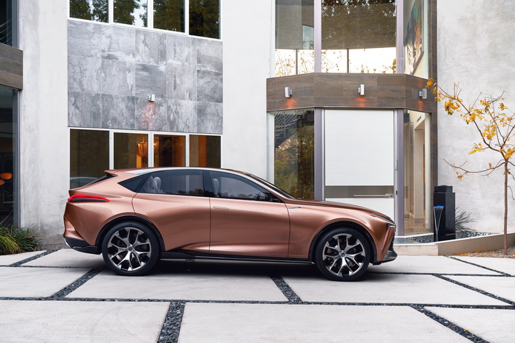 LF-1 Limitless由LEXUS位於美國加州的CALTY設計中心負操刀,以日本刀由鋼鐵經高溫冶煉成形的過程作為發想,整體設計融合了液態金屬的柔及日本刀的銳利,既簡潔又優雅。在車身比例上,誇張的長車頭短車身設計讓LF-1不同於一般休旅車方正的樣貌,而是充滿GT跑車氣息,結合緊湊的座艙設計、22吋大腳鋁圈及突出的前後輪拱,充分展現肌肉線條,低斜車頂及加高底盤設計則強調了LF-1兼具性能及實用性。