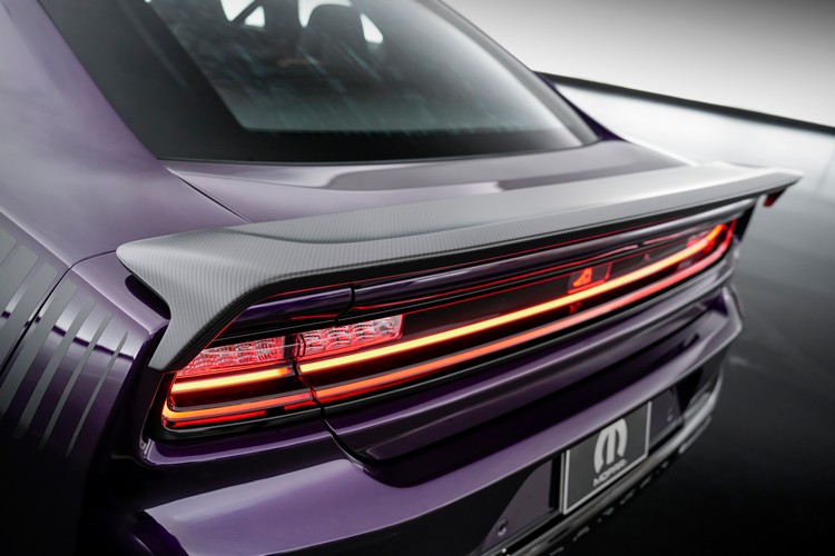 這部正式名為「Moparized Charger Sixpack Concept」的性能車集結了來自 DODGE 性能部門的一系列強化:外觀採 Stryker Purple(毒蛇紫)車色,並以碳纖維引擎蓋、前下擾流與後擾流尾翼妝點。