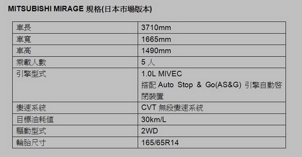 MITSUBISHI MIRAGE![]() 為符合新興國家及環境的需求,小型、平價及低油耗為MIRAGE開發時的首要考量,同時也提供先進國家對於低油耗、低排碳的最佳選擇。擁有3710×1665×1490mm車身尺碼,車室空間可供五人舒適乘坐,行李廂空間也能滿足車主的一般需求。