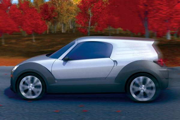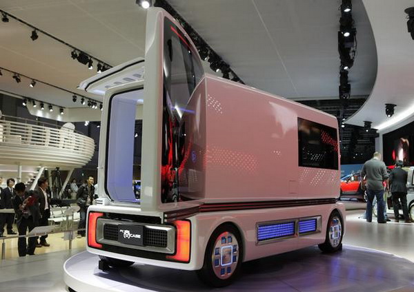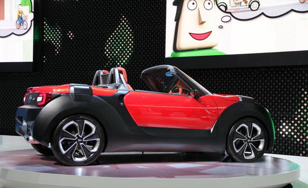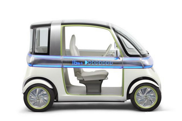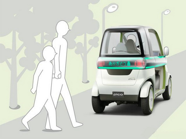 Pico:介於電動腳踏車與輕自動車間![]() Pico是定位介於輕自動車與電動自行車間的雙座電動都會通勤載具。也是對應高齡化社會接送老人小孩以及小區域宅配等社會需求所提案的概念車。車身尺碼為車長:2400×車寬:1000×車高1530mm,軸距1815mm,可以乘坐一位大人與二個小孩。