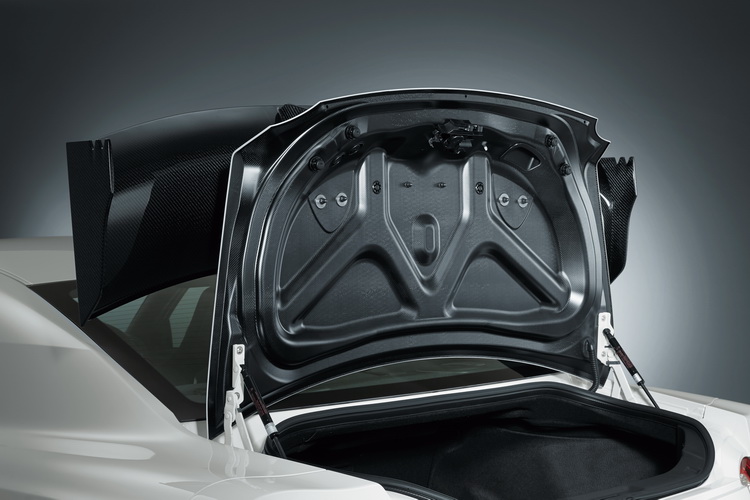 懸吊部分前後都換上了向BILSTEIN特訂的DampTronic避震器,讓車輛在極限狀態下也能獲得有如被吸附在路面上的高度抓地性以及確實的轉向路感回饋,行駛中還可以做三種不同懸吊模式的切換。腳上則是配前255/40ZR20、後285/35ZRF20尺碼的跑車胎搭配RAYS製的六輻式鍛造鋁圈。為了讓車子在高速過彎時將輪胎保持在最適當的角度,提升操控穩定性,在前雙A臂懸吊結構中追加了專用的上連桿,來 擴大後傾角曳引力距。