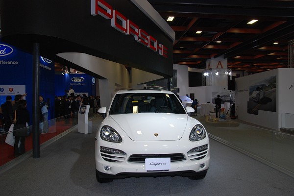 ![]() 保時捷此次於2012 台北車展展場以原廠規格打造,共計1,125平方公尺,為單一品牌全場最高規格展區,旗下頂級車款展出陣容強大,除了全新 911 Carrera S 之外,展出車型還包括:性能卓越與魅力獨特的 Cayman R、饒富駕馭樂趣的 Boxster、集合保時捷所有實用特性於一身的 Cayenne、GT 四門豪華跑車 Panamera Diesel、Panamera S Hybrid 和 Panamera Turbo S,外觀充滿強悍運動風格的 911 Carrera GTS 也將在此次車展中展出。此外更有保時捷 3 D 影音戲院,提供喜愛保時捷全新 911 的 車迷朋友絕無僅有的視聽享受。