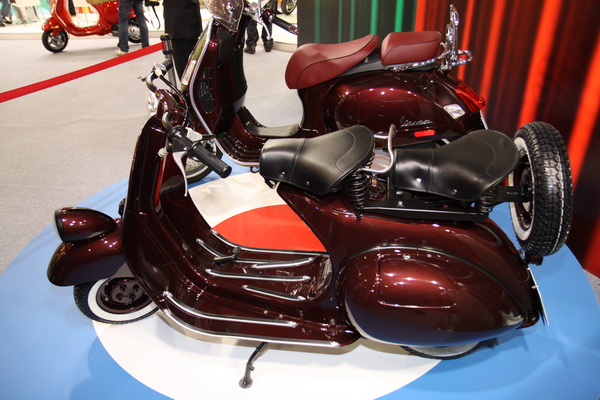 別以為車展都是四輪品牌的天下,由於太古集團下轄多個汽機車品牌,因此在台北車展當中VESPA也投入百萬經費參展,除了在展場中打造一座色彩繽紛的旋轉車馬外,並特別商借來與世界上第一台原型速克達 VESPA98 系出同源的 VESPA125 展出,另外還祭出限量九十九台的超優惠價格,以及宣佈紀念第一代原形車的 GTV300ie正式在台上市。