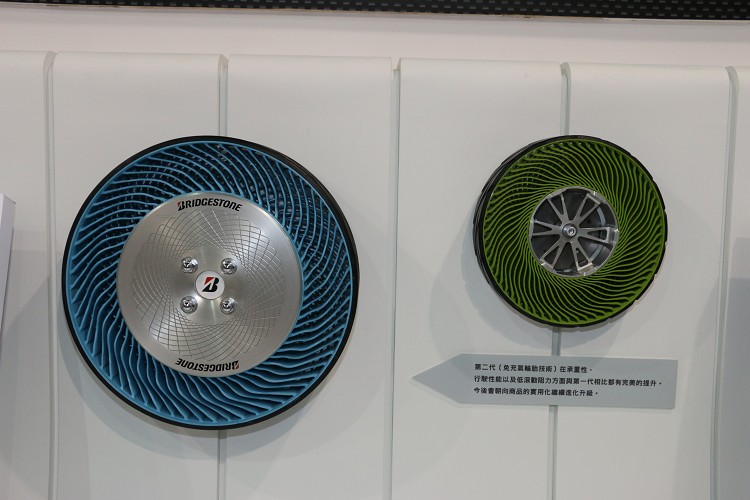 4.「普利司通 未來商品區」 此區將透過下述兩項商品的展出,讓您得知普利司通不斷以高技術力開發節能商品的決心。 (1)「免充氣式輪胎(Air Free Concept)」