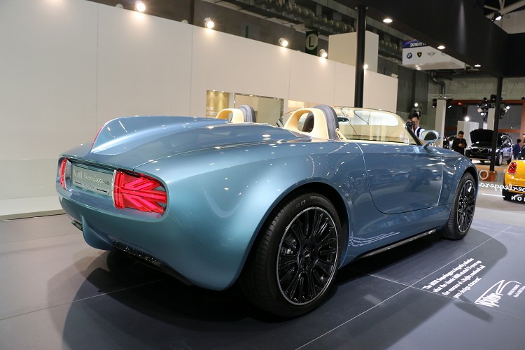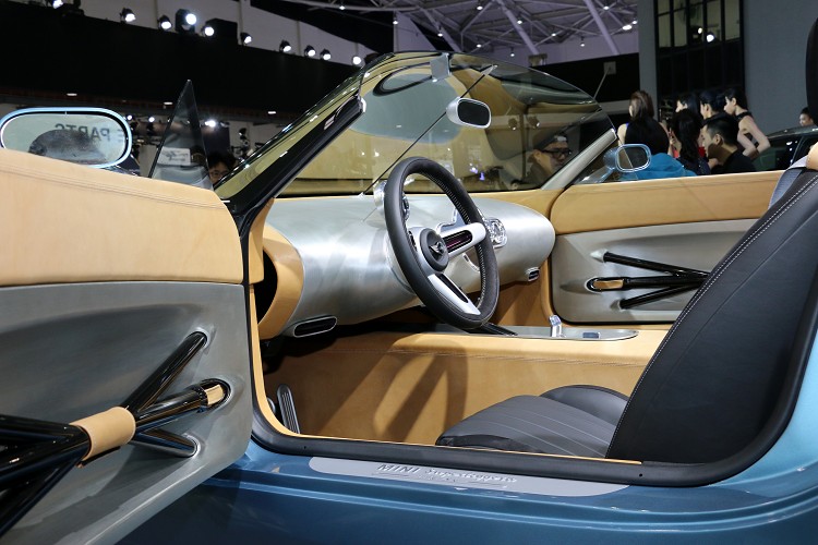 車身以精湛工匠技藝手工接合輕量化鋁製板金,幾乎沒有接縫的車身結構彷彿藝術品般,呈現出無法使用機器量產取代的極致精美,搭配專屬車色Como Blue營造出流水般的高雅律動。經典的MINI引擎蓋賽車飾條化做極富立體動感的折線, 呈現出經典英式跑車般的復古情懷,車頭設計與車身比例上承襲了MINI的經典設計:圓形LED頭燈與採用六角型元素的水箱護罩皆為MINI無法取代的標誌元素,極短的前後懸與廣佈車身四角的車輪位置也令人一眼辨識出MINI基因。車尾則以高調搶眼的鯊魚鰭設計帶出浪漫的經典跑車風格,LED尾燈也採用Union Jack英國旗元素,大方展現源自英倫的設計理念。
