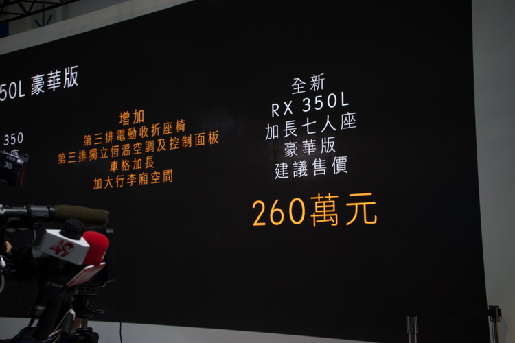 LEXUS這次車展帶來的最大好消息,就是人氣豪華SUV-RX車系的七人座加長版車型RX L正式引進國內上市。RX L是將RX的後懸長增加11公分,使車身自RX的C 柱後方延伸,打造出更多的空間,讓RX增加了第三排座椅,提供二個額外的乘坐空間。LEXUS成功挑戰了讓全新RX L既能保有RX原有的時尚前衛造型,更具備寬敞舒適的座艙空間,