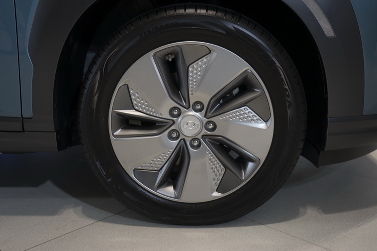 Kona Electric車頭的密閉式格柵氣壩在車頭相當顯眼,全車造型對空氣力學做了相當程度的優化,例如整合了充電狀態顯示的隱藏式車頭充電口以及17吋鋁圈等細部在設計時都考量到減少對空力的影響,也讓它擁有0.29Cd的低風阻係數。