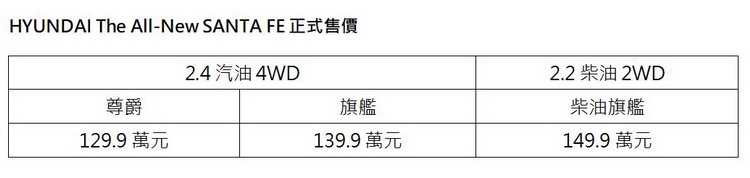 為求更舒適且穩定的行路感受,在歷經德國紐柏林賽道測試中心的嚴苛調校,The All-New SANTA FE底盤架構更大量採用鋁合金支臂,並以前麥花臣搭配後多連桿的設定,搭配大型工字型副車架、強化車體結構臂與防傾桿等結構,提供駕駛前所未有的嶄新歐化駕馭體驗。 以不分等級的安全 為車壇大七人座豪旅豎立最佳典範 安全,一直是現代汽車造車的首要考量,因此在世界移動城堡美譽的The All-New SANTA FE身分上更是如此。為提供駕駛與車內乘客更堅實的安全守護,車體剛性透過最新熱沖壓鋼材打造,整體剛性表現相比第三代車型,平均抗拉強度大幅提升14.3%,熱沖壓鋼材也增加超過兩倍達15處之多,車身抗扭剛性也增加15.4%的水準,讓The All-New SANTA FE擁有同級最強的堅實車體剛性,且車體剛性提升下,亦大幅降低車體動態過彎時的扭曲,進一步提升駕駛操駕的信心,讓即便身形健碩的The All-New SANTA FE在山道過彎時,依然擁有俐落的流暢動態表現。 此外,在先進主動安全科技配備上,The All-New SANTA FE全車系不分等級皆搭載品牌引以為傲的HYUNDAI SmartSense,整合「SCC智慧型主動車距維持系統(附Stop&Go)」、「LVDA前車駛離提醒系統」、「FCA前方主動煞停輔助系統」、「FCW前方撞擊警示系統」、「LDW車道偏移警示」、「LKA車道偏移輔助」、「DAW駕駛疲勞警示系統」、「HBA智慧遠近光燈調節系統」以及「ROA後座乘員下車提醒系統」9大安全科技。由內到外達到滴水不漏的安全防護,凸顯現代汽車對於車輛安全的嚴苛要求,更讓The All-New SANTA FE成為大七人座豪旅級距中的最佳安全首選車款。