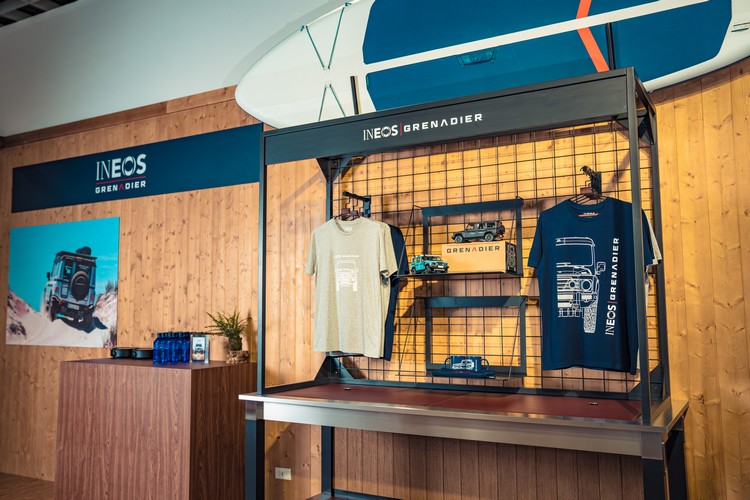 展示地台特別設置鏡面結構,一窺堅固耐用的梯形大樑底盤。極致風格區則首次展現 Grenadier 原廠多樣風格化選配件,如裝載專業運動裝備的自行車固定組,提供專業玩家級火力支援。