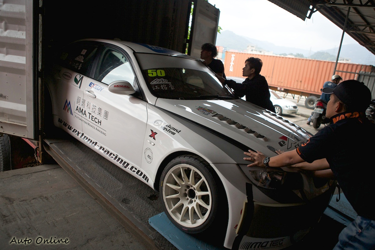 ![]() ▲為了避免運送過程碰撞,車身前後都要包覆海綿。Extend Racing Team使用的比賽車輛是由德國BMW MotorSport以BMW E90為基礎所打造,搭載一顆代號N45排氣量1,999cc的四缸自然進氣引擎,最大壓縮比設定在11.0:1,最大馬力為291hp/8,300rpm,最大扭力242Nm/7,250rpm,變速箱為一顆五速序列式手排變速箱。車輛所有的配備都經過FIA認證,完全符合國內外同等賽事要求。江榕豪表示,BMW E90在這次澳門電訊杯中有很大優勢,其最主要因素是E90後輪驅動設定,加上馬力比起其他Honda Integra DC5、Civic FD2等比賽車都佔優勢,只要能不犯錯、記熟賽道很有機會站上頒獎台。 ![]() ▲一個貨櫃除了比賽車外,其他備品都要一起運到澳門。