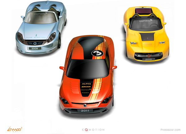 ![]() Protoscar在2009年日內瓦車展中發表了一代的LAMPO電動概念車, 之後於2010年推出改良後的LAMPO2,這一次所公布的LAMPO3可以說是整個計畫的完成型。LAMPO3的設計更接近市售的現實性,採取2+2座的雙門Coupe車體設定。樹脂材質的管狀車架搭配複合材質的車體達成高度的輕量化也是它的特徵之一。