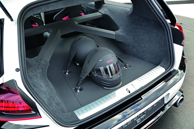 這部Design Vision是以七代Golf GTI為基礎,性能上有三級跳的表現,外觀上則是接近賽車的強悍風格,拉長C柱、車身寬體化並換上了新開發的20吋的鋁圈與前235/35、後275/30的配胎。