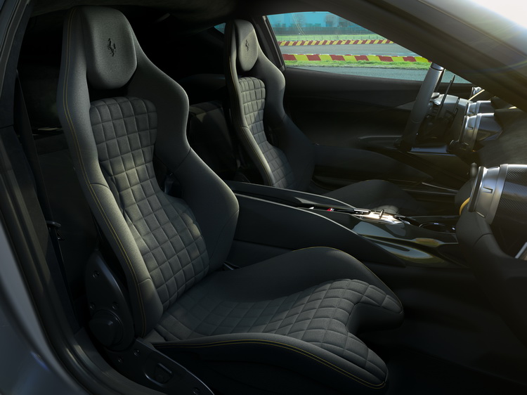 車室內裝設計大致維持與812 Superfast相同,主要的差異處包括了車門鈑件更為輕量化,以及中央鞍座導入車廠稱為「H-gate」的設計主題,反映出這部特仕車的賽車精神。