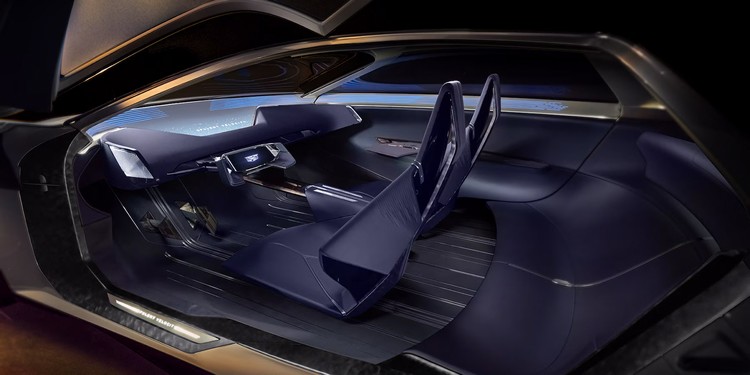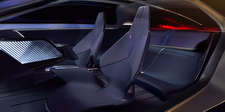 車室是寬敞的內部空間是由乾淨、不間斷,從後方一路流動至前方的環繞式懸垂表面實現,所有元素都呈現懸浮狀態。駕駛介面則是由支援3D資訊顯示的寬螢幕顯示器、數位儀錶、賽車風格的 Y 形方向盤與語音聲控功能所構成,資訊娛樂系統的操作也很直覺。