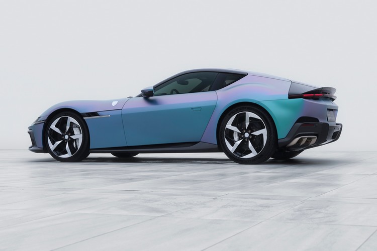 歷時將近兩年的磨合,團隊試圖在法拉利的工程語彙與韓國的藝術、文化身分之間找到連結,最醒目的成果就是車身那層名為「Yoonseul」的專屬塗裝。它是一種特別開發的漸層轉色漆,靈感取自韓國傳統的青瓷意象,又帶有首爾都會能量的現代感;隨著光線角度變化,色澤會在綠與紫之間游移,並帶出些許藍色點綴,視覺效果如同陽光映照海面所產生的粼光,而這種景象在韓文中正被稱作「Yoonseul」。
