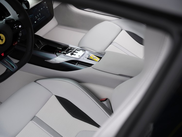 座艙的核心亮點,來自紡織藝術家 Daehye Jeong—她曾獲 2022 年 Loewe Foundation Craft Prize。Jeong 以手工編織馬尾毛(horsehair)聞名,這次她為 法拉利 設計出一款具代表性的圖樣,並以全新的立體織物形式呈現,而且是 法拉利 首次採用這種三維布料。這項材質被運用在座椅、地板與其他車室表面;更有意思的是,該圖樣也以絲網印刷方式出現在玻璃車頂上,讓座艙內的光影互動更具辨識度。此外,儀表台上還永久整合了一件以蒙古馬尾毛編織而成的手作藝術品,這同樣是 法拉利 首次把「原創藝術物件」固定融入內裝之中。