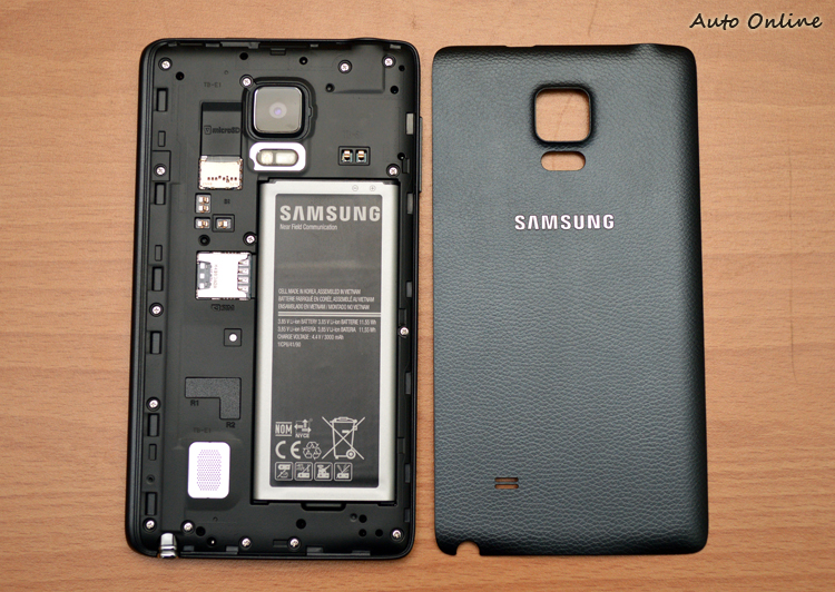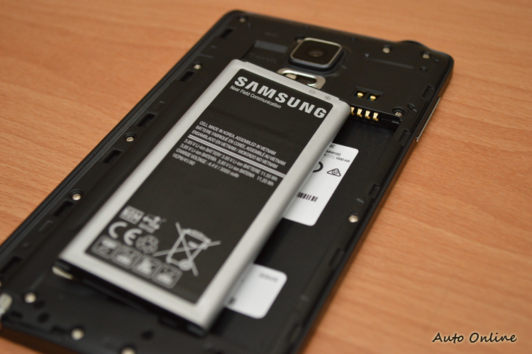 ![]() ▲Galaxy Note Edge採用5.6吋QHD+顯示螢幕,並且透過Super AMOLED的技術使色彩細膩度與影像的清晰表現都相當不錯。在螢幕的部分,Galaxy Note Edge採用5.6吋QHD+顯示螢幕,並且透過Super AMOLED的技術使色彩細膩度與影像的清晰表現都相當不錯。值得一提的是,Note Edge的螢幕使用的是特殊的軟性薄膜層材質,這項取代傳統玻璃材質的特殊製造工法,不僅使機身更為輕巧,同時也是它能夠彎曲的重要因素。 ![]() ▲因為彎曲螢幕的設計,Note Edge的電源鍵移到機身上面。![]() ▲Note Edge使用3000mAh的電池。![]() ▲Note Edge使用可拆式背蓋,並且使用皮革材質來提升它的質感。