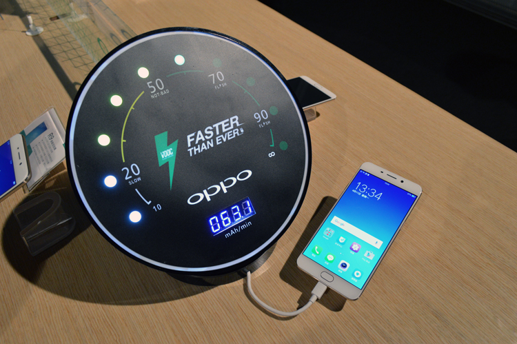 OPPO R9 同樣搭載全球已超過一千八百萬用戶使用的 OPPO 專利VOOC 閃充技術,充電5分鐘即可通話兩小時。而R9 搭載的 2850mAh 大電量鋰電池,讓 R9 在重度使用下仍擁有 14 小時 5 分鐘的續航時間,要你從早拍到晚無時限。