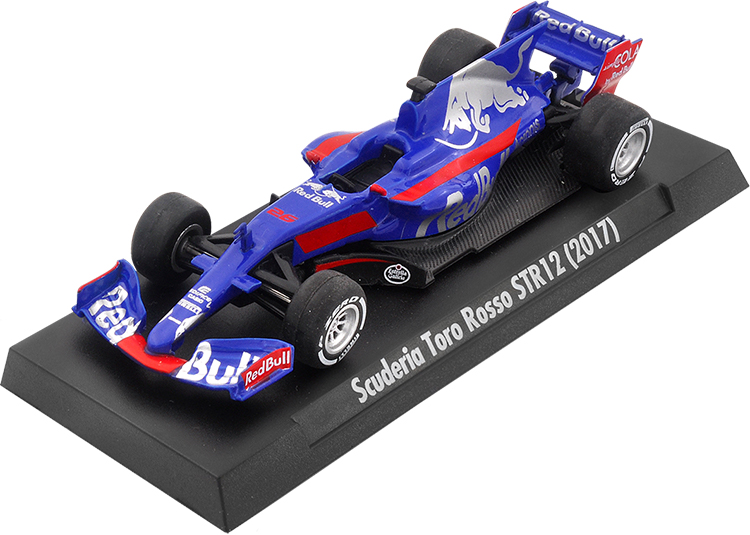 Scuderia Toro Rosso STR12 (2017) Red Bull是唯一在1級方程式賽事經營兩個車隊的品牌,Toro Rosso車隊作為Red Bull車隊重要人才庫,12年來培養了無數新秀,現在活躍的Max和Daniel都曾是Toro Rosso車隊的重點選手。捨棄經典的紅牛彩繪,改以金屬紅、藍為主色調,並搭配流線的銀色圖騰亮面塗裝;圓滑的車鼻與其他賽車採用的低凸車鼻相比,外型更為優雅大器。