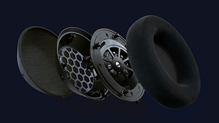 此一開放式後背耳機以具透聲效果的Kvadrat喇叭材質包覆,使空氣可穿透纖維自由流動,減少薄膜後方累積的空氣壓力,創造令人陶醉且自然的廣闊音場。