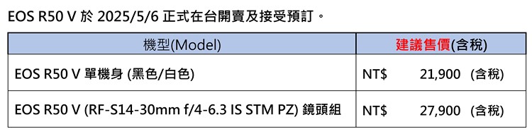 CANON首款EOS V系列可交換式鏡頭影音相機EOS R50 V