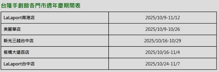 台隆手創館〈一站購足週年慶〉10月9日起登場,HANDS全台門市同步百貨商場週年慶促銷期間,讓手創館愛用者購買年度限定買一送一居家生活好物,以及各門市獨家推出的週年慶優惠組促,各店享超過150組生活商品享週年慶才有的超值囤貨價。搭配各商場贈送的百貨周周來店禮、滿千送百及銀行禮回饋(活動依各百貨公告為準),台隆手創館週慶獨家品牌滿額禮,祭出單筆購物滿1,500贈送HANDS時尚購物袋,HANDS會員獨享滿3,000元送300元品牌電子券。