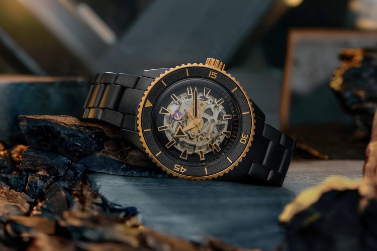 冒險的節奏從來不會等人把一切都準備好,而是一個念頭落定,就該出發。Captain Cook 庫克船長高科技陶瓷鏤空腕錶,以霧面黑色高科技陶瓷整體式構造錶殼打造,搭配玫瑰金色可旋轉錶圈與雷射蝕刻黑色陶瓷襯片,線條俐落,對比鮮明,卻依舊維持庫克船長系列的硬派辨識度。 鏤空設計讓機芯運作清晰可見,腕錶搭載 R808 自動上鍊機芯,具備 80 小時動力儲存,配備 Nivachron™ 防磁游絲並通過五方位測試,將探索路上的穩定與精準牢牢握住。錶盤配置幾何時標與玫瑰金色調時分秒針,並覆以 Super-LumiNova®夜光塗層,低光環境依然清晰讀時。搭配霧面黑色高科技陶瓷三排式錶鏈與三摺式鈦金屬錶扣,讓它從日常行程到遠行計畫都能可靠相伴。