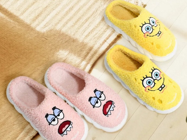 冬季超人氣IP新品-保暖泡泡氣墊拖鞋,以派大星和海綿寶寶設計的包頭拖鞋,短絨毛面料親膚舒適、包覆保暖。搭配超強靜音防滑鞋底安全防護,可愛必敗。