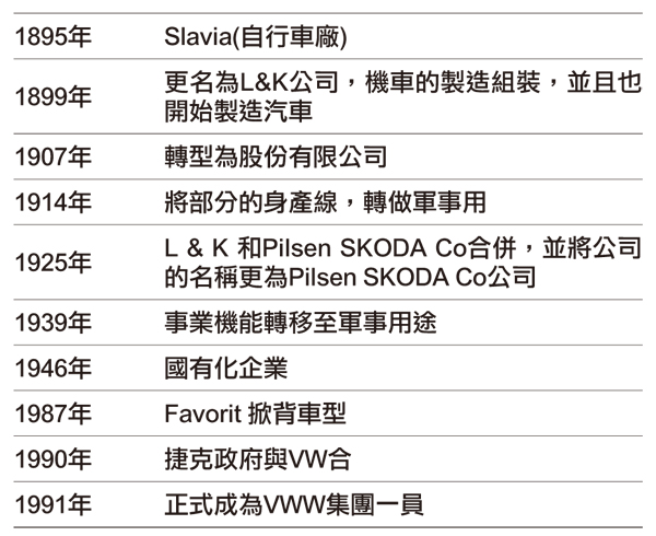 回溯歷史![]() ▲1925年Popular車型就算以現在來看也是相當的亮眼講起SKODA的品牌歷史,可以從1895年開始講起,在創立的初期Vaclav Laurin與 Vaclav Klemen由這兩位自行車愛好者在布拉格(捷克的首都),中心約50KM里外的郊區,一起成立了一家名稱為「Slavia」的自行車工廠。 ![]() ▲1905年SKODA的前身L&K是做腳踏車起家![]() ▲1899年 L&K生產的第一款汽車Voiturette A1907年Laurin & Klement Co也正式轉型為股份有限公司,而不斷擴張版圖的SKODA也將視野放眼全世界,而這樣的轉變工廠的生產線也不斷的擴增。1914年的同時第一次世界大戰爆發,SKODA也將部份的生產線轉移至軍事用途,也開始起了SKODA另一項關鍵業務。 隨者第一次世界大戰的1920年代,歐洲不在受到戰爭的紛擾,歐洲經濟活絡捷克整體經濟情勢跟者連帶迅速發展,為了讓Laurin & Klement Co股份有限公司更現代化與企業版圖的擴張,Laurin & Klement Co進行相關的合作,快速地將事業況展至,乘用車、卡車、巴士,飛機引擎…..等運輸工具,現今的捷克大多數的交通運輸工具也都來至SKODA。