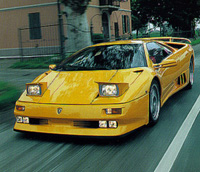 一如其他微量生產的跑車廠,藍寶基尼也始終為財務煩惱,一九七一年首度面對周轉不靈,費魯科意歐只得將所有權給讓了。一九七八年再次發生財務危機,轉由米勒曼(P. Mimran)先生經營。一九八七年底,這頭渾身是勁的蠻牛,投入克萊斯勒的旗下,不多久,即從克萊斯勒的全新超級跑車「蝮蛇」Viper身上,嗅出絲絲「牛味」。 一九九三年十一月初,克萊斯勒「突然」與印尼的大財團SETCDO所屬,在百慕達登記註冊的控股公司Mega Tech簽定合約,以四千一百萬美金,將藍寶基尼的製造廠與技術部門轉讓給對方;當年艾科卡因慕名而買下藍寶基尼,而今克萊斯勒緊接著艾科卡退休之後,就賣掉了這頭蠻牛,所為何來?實在費思量。 雖然藍寶基尼的前途迷離,但是車迷們且莫氣餒,為慶祝建廠三十周年而設計的Diablo 30 SE (30 Special Edition)已於今年二月正式上線生產,而其敞蓬車型也將上線。預計今年六月,約有一百五十部30SE,會從藍寶基尼的聖雅卡塔(Sant'Agata)廠完裝現身,更拉風的敞篷車則於夏天推出二百至二百五十部。 Diablo 30 SE只有GT款式,四十八氣門、四凸輪軸的V型十二缸引擎,排氣量仍是五千七百西西,但是將氣門正時,供油系統與點火系統修改,又將曲軸「減肥」七公斤後,馬力由四百九十二匹,提升為五百二十五匹,由靜止到時速一百公里僅需四秒,極速則達三百五十二點四公里,其他的跑車大約只有驚呼「哇!」的分了。