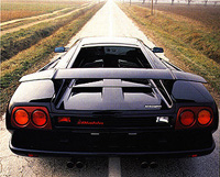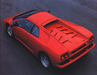 藍寶基尼於一九八七年底隸屬於克萊斯勒旗下後,即朝車身輕量化、馬力強勁化及四輪驅動化的尖端車型努力,前述的L25型是起步,而隨後推出的Diablo則是終極車款。 Countach於一九八八年接受最後的訂單後,在一九八九年終止了持續十九年的生產。接棒的是藍寶基尼和克萊斯勒共同開發的Diablo,義大利文的原意是「惡魔」,而對所有的競爭對手來說,則是「惡夢」。基本上它承襲了Countach大部分的設計理念,但在精緻度方面則更上層婁。 Diablo的心臟-引擎,由原來的V型十二缸DOHC四十八氣門五千二百西西,擴大為五千七百西西,採用燃料噴射系統及電子控制式點火系統,擁有四百九十二匹馬力及五十九點二公斤米的扭力輸出,極速可達三百二十公里,輕鬆的衛冕成功,接替Countach再度成為九○年代的魅力車種。 藍寶基尼所以能在車壇上獨樹一幟,其前衛的造型應居首功。而擔綱捉刀的則是博通(Bertone)設計公司的首席設計師馬爾切格‧甘迪尼(Marcello Gandini),他有個同業稱羨的稱號「天才車身設計師」。 二十七歲進入博通公司的甘迪尼,主掌設計檯的第二年(一九六六年)就推出首場好戲-超級跑車Miura,接下來的Marzal、Urraco、Bravo及Espada更是連台好戲,轟動了全世界車壇。而Countach則是這位設計大師鬼斧神功的純精演出。特別要提醒車迷的,是Countach向上方垂直開啟的兩扇車門,並不是「鷗翼式」設計,而係甘迪尼的獨門巧思「刀鑑式」,也正因此,Countach得以獲致左看成峰,右看為嶺,百看不厭的怪異出眾的形象。